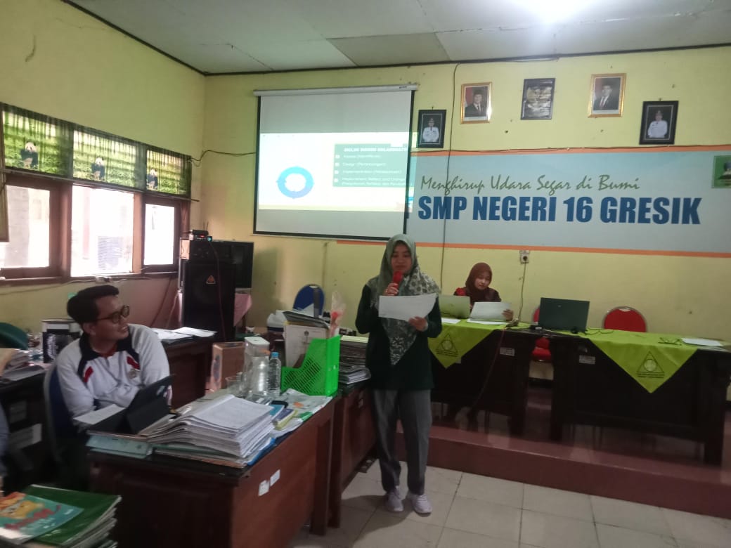 Kegiatan RTL ini juga dihadiri oleh seluruh guru SMPN 16 Gresik, yang tampak antusias mengikuti rangkaian diskusi, tanya jawab, serta sesi refleksi. Kehadiran para pendidik yang bersemangat ini mencerminkan tekad kuat sekolah untuk terus berinovasi demi meningkatkan mutu pembelajaran.